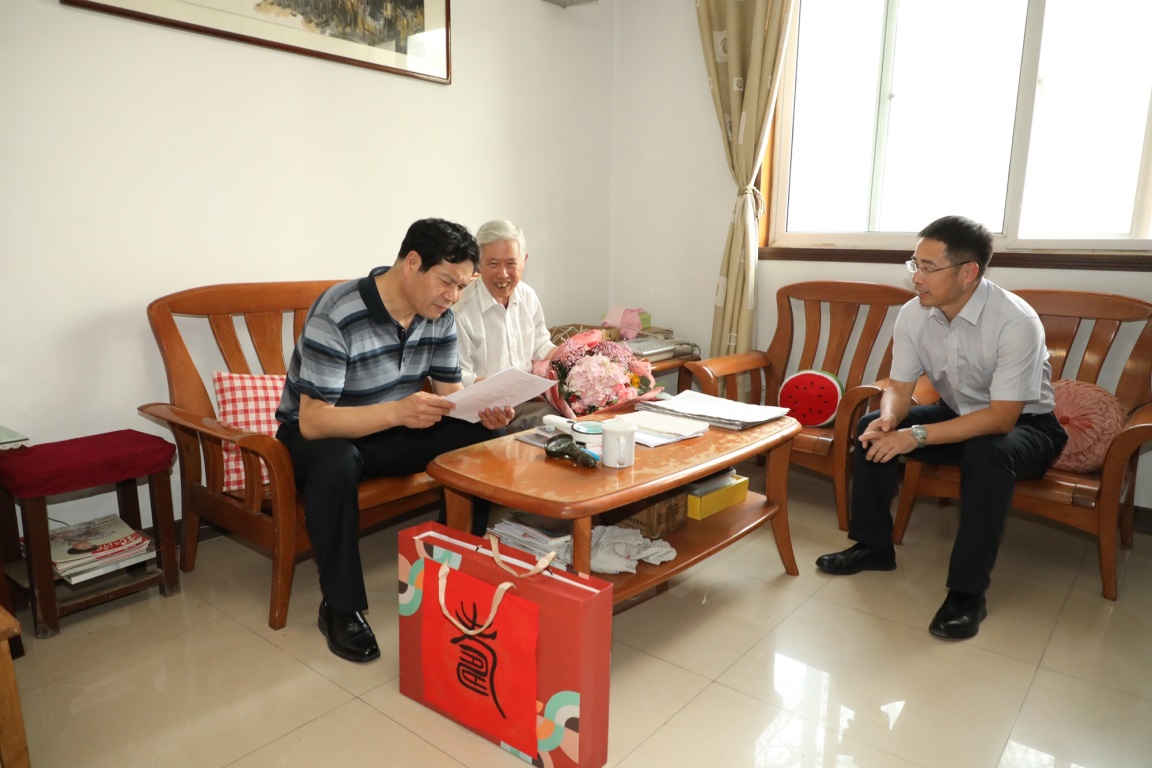 9月29日,在全校上下喜迎中华人民共和国成立70周年之际,校党委书记郑永安,校党委副书记、纪委书记杭育新亲切看望慰问我校部分离退休老干部,代表学校党委、行政向为新中国成立和南航建设发展作出贡献的离退休老干部致以亲切问候和崇高敬意,向全校离退休老同志致以节日的美好祝愿。