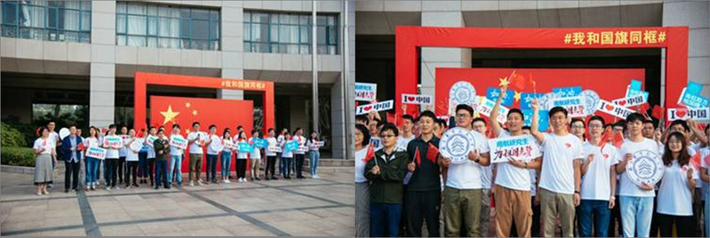 研究生“五好”导学团队代表在国旗下领唱《我和我的祖国》,师生们舞动着手中的五星红旗齐声合唱,嘹亮的歌声振奋人心,表达着南航学子对党和国家的热爱。大家纷纷与国旗同框,共同拍摄“南航研究生,为祖国奉献,为祖国点赞”视频,用青春剪影留下敬礼祖国的美好祝福。