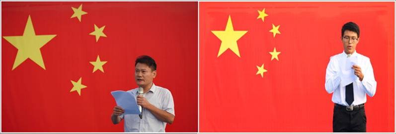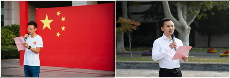 随后,师生代表分别上台作国旗下讲话。在将军路校区,航天学院康国华教授从担任我校第一颗微小卫星“天巡一号”常务副总师,和师生们一起在宇宙中留下“南航印记”的实践出发,分享了他对航天精神的理解,并鼓励同学们努力学习、成为担当三航重任的时代新人。经济与管理学院维吾尔族学生党员排祖拉·阿卜杜克热木同学深情回顾了在党和国家政策帮助下,通过自身努力不断求索知识、提升素质的经历,他认为各民族守望相助、像石榴籽一样紧紧抱在一起,才能建功新时代、共筑中国梦。与祖国同一天生日的机电学院2019级新生胡岱艺同学则回忆了自己成长的难忘瞬间,他的爱国情怀受军人父亲影响而萌芽,因目睹北京奥运会盛况、辽宁舰服役而持续生长,并在进入南航后愈发坚定,他决心掌握扎实的飞机制造技术、为建设制造强国努力奋斗。