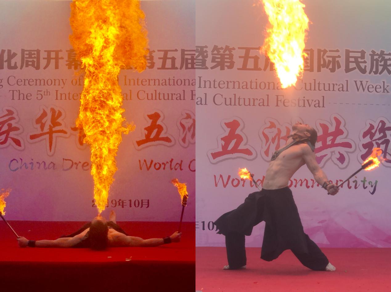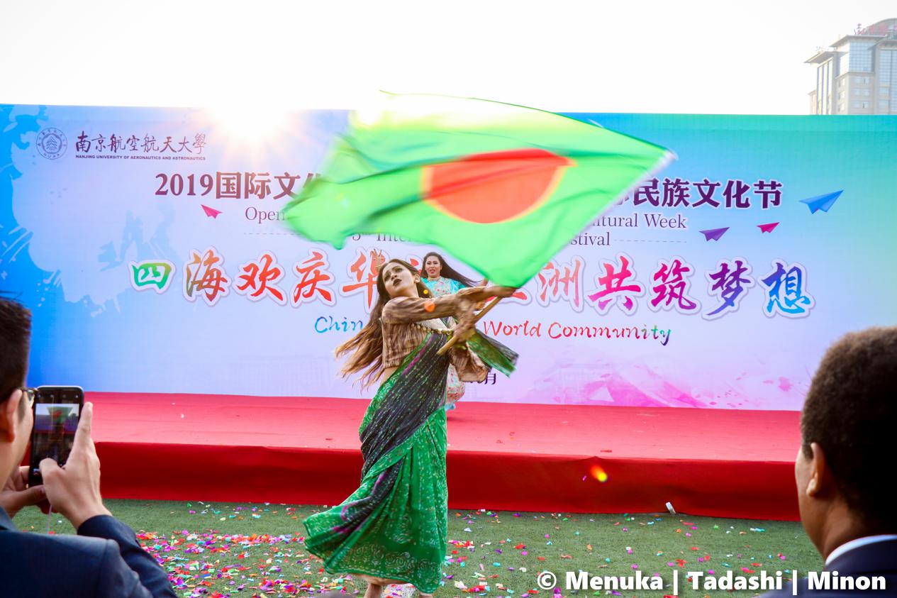 “民族歌舞秀”环节,来自尼泊尔、巴基斯坦、肯尼亚、加纳、赤道几内亚、等国家的姑娘和小伙子们,身着民族服装,带来极具异域风情的歌舞。舞台表演带动了整场活动的氛围,带来了充满浓郁文化色彩、散发异域风情的歌舞、乐器表演,以及惊险刺激的火焰杂技表演。身着各样服饰的中外学子,或吹弹演奏,乐曲悠扬婉转,或劲歌劲舞,尽显十足动感。还有来自东南大学、河海大学、南京理工大学和南京林业大学等兄弟院校的留学生节目前来助阵,本届国际民族文化节吸引了大批学生和老师前来观赏,人群中不时爆发出阵阵热烈的掌声和喝彩声。