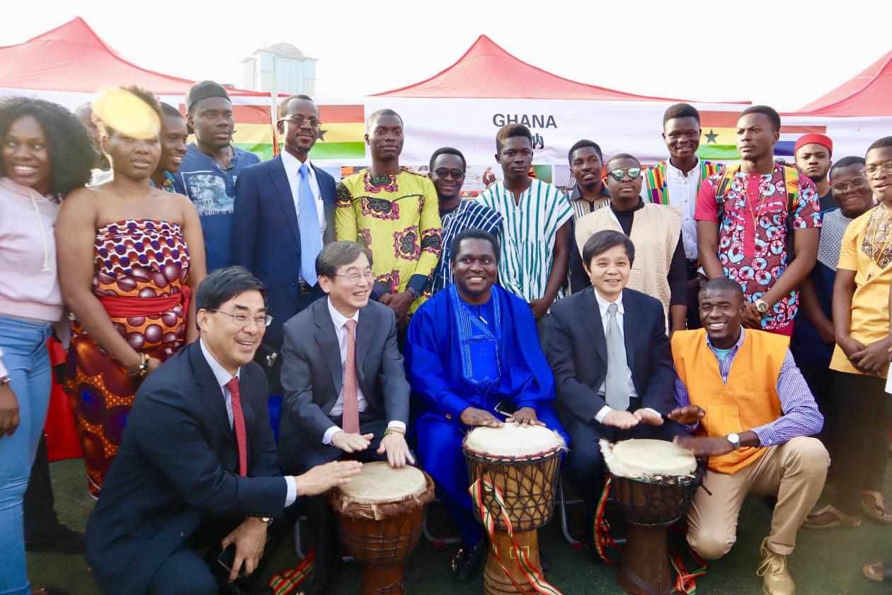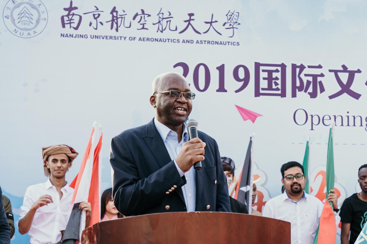 金陵十月、秋风送爽,正值新中国70周年华诞和我校建校67周年之际,10月21日,我校“2019国际文化周暨第五届国际民族文化节开幕式”在将军路校区举行。加纳共和国驻华副大使Charles Dwamena、参赞Felix Eddie Arthur,津巴布韦驻华副大使Mqabuko Spencer Dube,埃塞俄比亚驻上海总领事Workalemahu Desta,泰国驻上海总领事馆教育领事Wesarat Keokajee、教育领事助理Chutima Arrayangkun等嘉宾亲临现场。