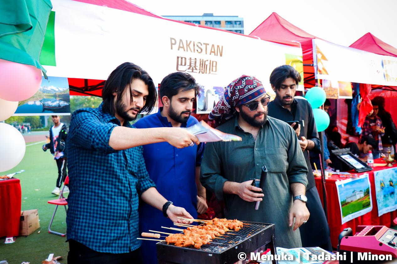 “环球美食汇”上,来自世界各地的特色美食悉数登场,在一些国家展区前,早已排起了长长的队伍。越南留学生制作的越南米粉、也门留学生制作的坚果蛋糕、印度尼西亚留学生亲手烹饪的虾饼、阿塞拜疆留学生现场沏的红茶、中国藏族学生从家乡带来的奶片……中外学生同台竞技,巧手烹饪出各色美食,让师生们大饱口福。这是一次美食的旅行,更是一场文化的遨游。