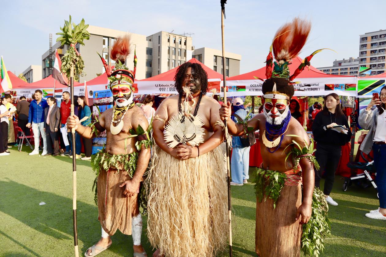 随后,第五届国际民族文化节正式开始。舞台上,学生们身着民族服装热情起舞,舞台下,来自中国、阿塞拜疆、埃塞俄比亚、津巴布韦、尼泊尔、肯尼亚、也门、巴基斯坦、孟加拉国,吉布提,泰国,马来西亚,印度尼西亚等近四十个国家以及二十几个世界名校的六十多个展台组成的“国际民族文化展/海外教育展”吸引了大批师生前来参观,大家争相领取迷你护照,在各个展位盖章打卡,品尝民族美食,观赏手工艺品,体验民族风情。