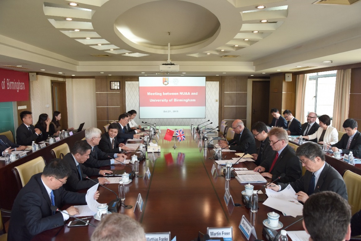 聂宏向代表团一行的来访表示了热烈欢迎并简要介绍了我校基本情况。他表示,南航和伯明翰大学在学校特色和学科设置上具有一定的相似之处,这为两校的合作奠定了扎实的基础。他希望通过此次会谈能够加深两校对双方的理解认同,在人才培养、学术合作、师资互访等领域开展更深入的合作。