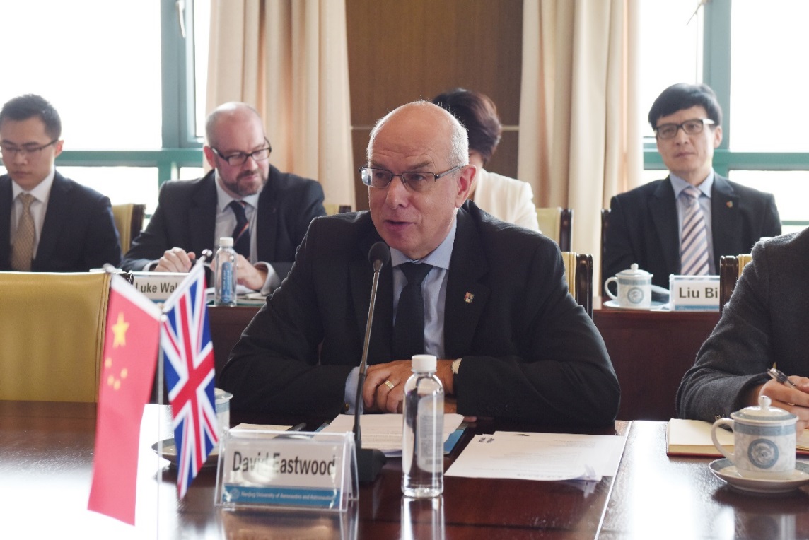 David Eastwood对南航的热情接待表示了感谢。他简要介绍了伯明翰大学的创校历史、专业设置和师资力量,并希望通过此次会谈,探讨双方合作的潜在领域,推动师生互访、科研合作,与我校开展实质性合作。