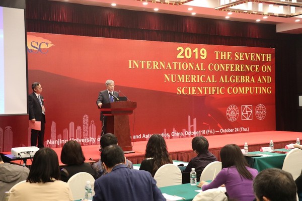 由中国科学院数学与系统科学研究院主办,我校理学院承办的第七届数值代数与科学计算国际会议于2019年10月19日-10月23日在南京国际会议中心举行,我校理学院戴华教授和中国科学院数学与系统科学研究院白中治研究员担任会议共同主席,来自9个国家的200余名代表参加会议,校长助理熊克教授、理学院常务副院长王春武教授出席本次会议。熊克教授代表学校致欢迎辞,对国内外与会嘉宾及代表表示热烈欢迎,详细介绍了我校的发展历程、学科特色以及理科振兴计划。