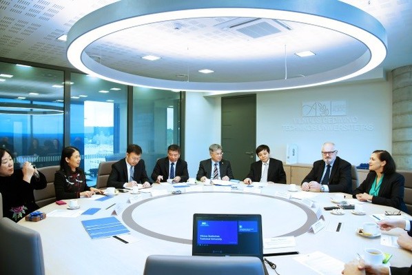 10月11日上午,聂宏一行访问了立陶宛维尔纽斯皇家理工大学(Vilnius Gediminas Technical University)。该校校长阿尔方索斯·达尼乌纳斯先生热烈欢迎南航代表团的到来,副校长奥斯娜·佩勒迪恩娜女士向来宾介绍了学校发展情况,并期待在机械工程、商务、航空等学科专业领域与我校开展学生交流交换、联合办学、联合科研等合作。张卓代表学校介绍了学校发展情况,并对两校合作提出了具体建议。会见结束后,聂宏一行参观了该校航空航天学院。聂宏对该院师生创新性的无人机设计、卫星技术创新和面向工程的育人模式做出了充分的肯定。下午,聂宏一行来到立陶宛综合排名第一的维尔纽斯大学。校长阿图拉斯·祖考斯卡斯教授亲切接见了聂宏一行。双方签署了合作协议,并探讨了在学生交流交换、经管学科联合办学、环境检测和可持续发展科学研究等领域的议题。