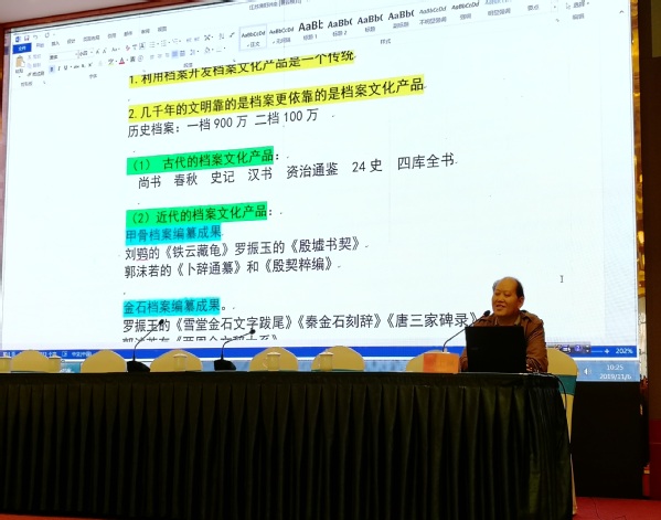 大会还邀请了武汉大学档案馆馆长涂上飙教授作《档案资源开发与利用》的学术报告,报告从档案文化编研工作传统、档案文化资源开发基本做法、认识感悟三个方面跟大家做了分享,精彩的报告引起了阵阵掌声。