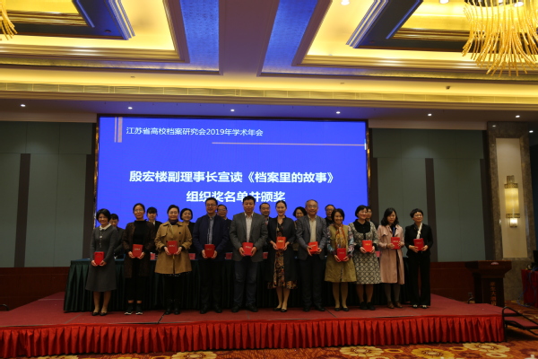 会上,江苏省高校档案研究会副理事长、我校档案馆馆长王伟宣读了《关于江苏省高校档案研究会2019年学术研讨会征文评选结果的通知》,副理事长殷宏楼《关于授予2019年“档案里的故事”征集活动优秀组织奖的决定》,并对相关单位和个人颁发了获奖证书。