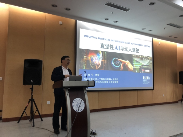 2019年11月13日,中国工程院院士、西安交通大学教授郑南宁应邀做客我校“问天科学讲坛”(总第152期),做题为“直觉性AI与无人驾驶”的学术报告。报告会由副校长姜斌教授主持,自动化学院院长江驹、图书馆馆长王成华、校科协秘书长刘双丽、自动化学院、电子信息工程学院、计算机科学与技术学院/人工智能学院等全校师生200余人参加了报告会。
