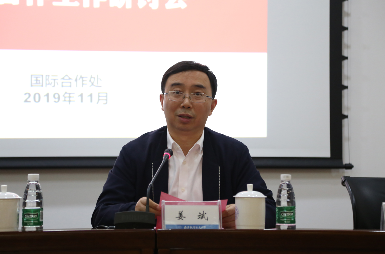 为做好部分外事审批权下放后的教职工因公临时出国(境)管理相关工作,11月13日下午,我校在明故宫校区图书馆4楼报告厅召开外事审批工作培训会暨国际合作工作研讨会。副校长姜斌,校长助理熊克,学校机关部处、直属单位主要负责同志,各学院主要负责同志及相关代表参加了本次会议。