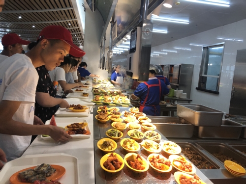 集团积极调动各食堂资深厨师、厨工,赴新校区餐厅工作。开学后,为确保饮食安全,严把原料质量关,杜绝以次充好,对所有菜肴进行48小时留样;严把餐具消毒关,始终绷紧安全弦。为满足来自天南海北的学生口味,不断完善菜品种类,让师生们吃得放心、吃得满意。在原材料大幅度上涨的情况下,集团顶住多方压力,坚持不上调菜价。每日依旧提供五毛钱包子、鸡蛋等保障性菜肴和2元特价菜肴,提供免费酱菜、汤等。食堂服务人员仪表整洁,微笑服务。服务水平不断提升的背后,离不开每一位后勤人的倾情付出,如面点组的工作人员每日凌晨3点就到岗工作,为师生准备早餐。