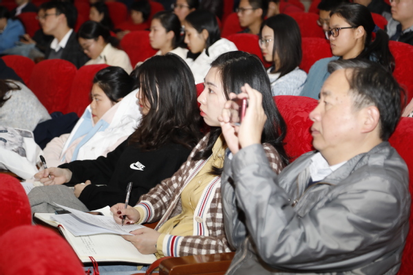 全体校领导、党委常委、校长助理,全体中层干部,全体思政理论课教师,院级党组织组织员、信息员,全体辅导员、学生党员代表400余人参加报告会。