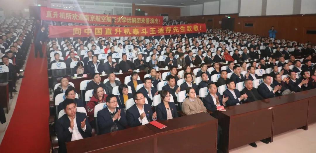 徐德朋、赵伟华在致辞对南航全体演职人员的到来表示热烈的欢迎,并表示,王适存教授把全部的精力投入到了直升机事业中,培养了一代代优秀的设计师和工程师,开创了中国航空事业的美好未来,是全体直升机人学习的楷模。他们指出,观看此部话剧也是厂所“不忘初心、牢记使命”主题教育和宣传弘扬航空报国精神的重要内容。要通过学习王适存教授的事迹和精神,进一步做到立足岗位担当使命,把老一辈开创的直升机事业继续向前推进。