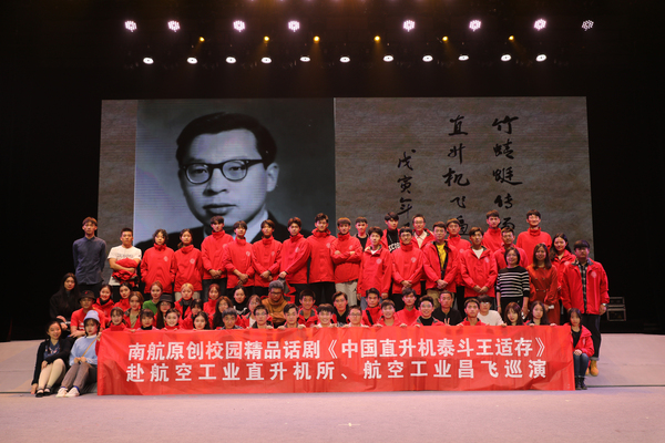 今年是新中国成立70周年、中国航空事业110周年,恰逢中国航空工业昌河飞机工业(集团)有限责任公司(简称昌飞公司)建厂、中国直升机研究所(简称602所)建所50周年,受到昌飞和602所的联合邀请,11月24日至25日,我校原创校园精品话剧《中国直升机泰斗王适存》在中国直升机之都景德镇成功上演,分别为昌飞公司和602所带来精彩的话剧演出。