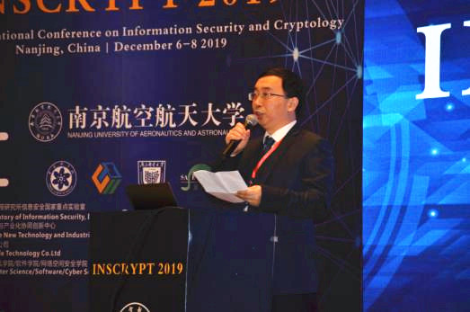 2019年12月6日至8日,由国际密码协会(IACR)、中国科学院信息安全国家重点实验室和南京航空航天大学联合主办的第十五届信息安全与密码学国际会议(Inscrypt 2019)在南京召开。IEEE Fellow、中国自动化学会会士、副校长姜斌和大会名誉主席、中科院林东岱出席开幕式并致辞,副校长、大会名誉主席黄志球出席颁奖典礼,并为最佳论文获奖者颁奖。会议得到了国内外密码学及信息安全领域专家学者的积极响应,来自中国、美国、法国、日本、印度、新加坡、澳大利亚等国家的200余名代表出席了本次盛会。开幕式由计算机科学与技术学院/人工智能学院院长、大会主席陈兵主持。