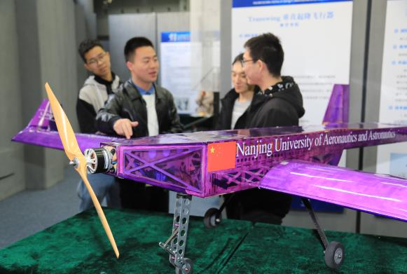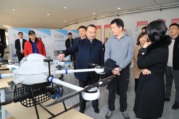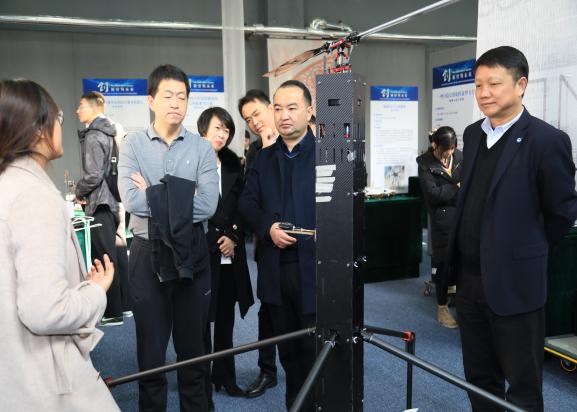 开幕式之前,参会领导和嘉宾参观了创意创新创业作品展区。此次三创节展览共分为场内场外两个展区,包括百余件作品和项目。场外展区展出了近两年来我校学子在“挑战杯”、“创青春”、“互联网+”等国家级重大赛事中获奖的作品,场内展区则集中展出了南航大学生自主创作的Transwing垂直起降飞行器、新型共轴双旋翼直升机设计与控制、手指运动康复训练机器人等创新创意作品。