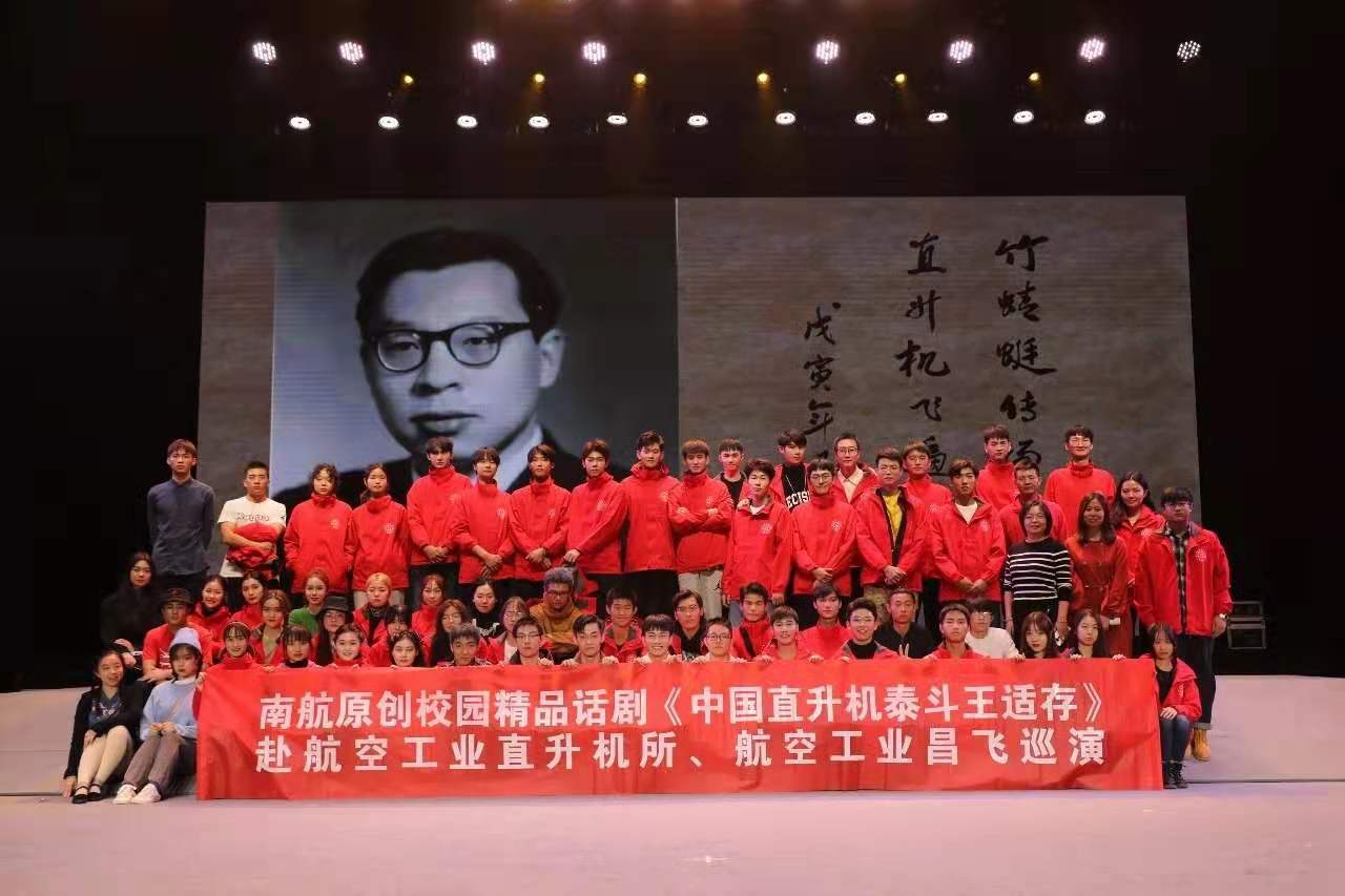 11月24日、25日,我校原创校园精品话剧《中国直升机泰斗王适存》受航空工业昌飞公司和直升机所的邀请,在景德镇成功巡演,好评如潮。巡演结束后中国科协组织召开了话剧专家研讨会。专家们对话剧给与了高度的评价和肯定,认为该剧立意好、内涵深、队伍强、表演精,通过王适存教授一生的事迹,体现了南航专业特色和王老的精神品格,值得推广,让更多人了解到中国直升机事业的发展,感受到中国直升机人“航空报国”的精神。同时,各位专家对话剧的表演和剧本提出了修改意见。经过学校申报、专家评审、中国科协审核,最终我校原创校园精品话剧《中国直升机泰斗王适存》入选“共和国的脊梁——科学大师名校宣传工程”。