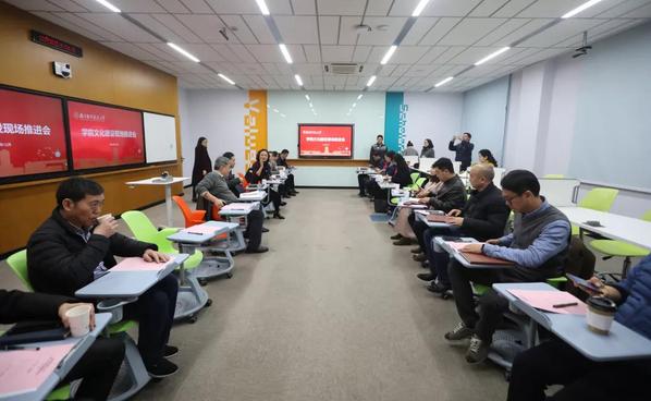 12月25日下午,学院文化建设现场推进会在将军路校区举行,校党委副书记、纪委书记杭育新,校党委常委、宣传部/教师工作部部长王晖、各学院负责文化建设工作的相关领导共同参加了会议。本次现场推进会分为现场参观和交流研讨两部分。