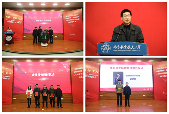 黄锐、李光俊,孔垂谦、袁智强共同启动成飞-南航“智汇蓝天”四期科创项目。随后李光俊做四期项目发布寄语。孔垂谦为四期科创项目的成飞企业指导老师代表颁发“行业教师”聘书,同时为优秀的企业辅导老师代表,昌麟投资公司总经理吴思雨颁发南京航空航天大学“创新创业特聘教授”聘书。
