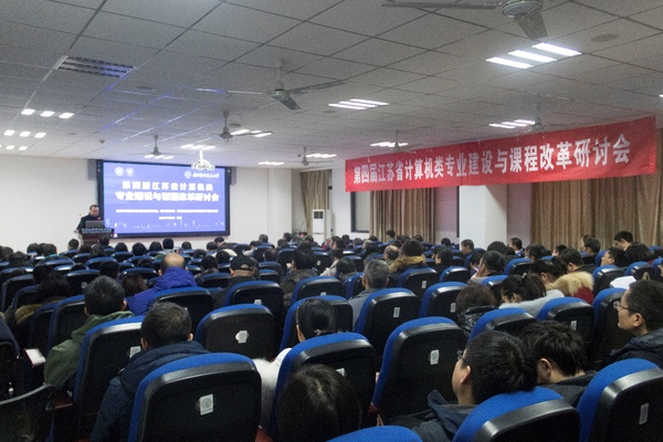 1月5日,由计算机科学与技术学院/人工智能学院承办的第四届江苏省计算机类专业建设与课程改革研讨会在我校举行。来自省内外十余所学校的150余名教师齐聚我校,共同研讨计算机类专业建设与课程改革事宜。上海交通大学软件学院院长臧斌宇教授、合肥工业大学计算机与信息学院教学指导委员会主任胡学钢教授、西安电子科技大学计算机学院执行院长崔江涛教授等三位专家就工程教育专业认证进行了专题报告。校党委副书记陶勇、教务处处长孔垂谦、教师发展和教学评估中心主任周克印,长空学院、计算机科学与技术学院/人工智能学院等相关领导参加了会议,计算机科学与技术学院/人工智能学院院长陈兵主持会议。