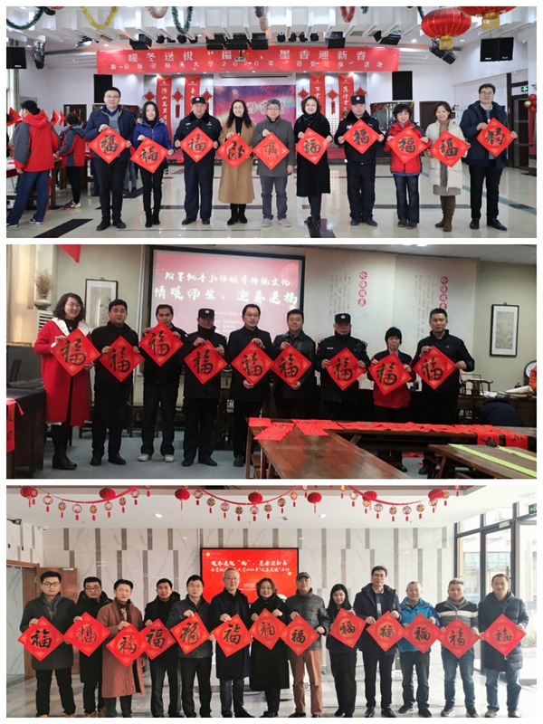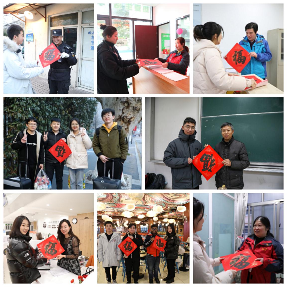 本次活动为坚守在岗位上的老师、宿管阿姨、保卫队员也送上了“福”字,为即将回家的学生和留学生们送上了祝福。