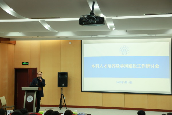 教务处处长孔垂谦从教育思想大讨论切入,总结了2019年本科教学工作;分析了严格教育教学管理、深化教育教学制度改革、引导教师潜心育人等当前国家关于教育教学改革的动向和要求;阐述了一流专业建设、一流课程建设、强化实践教学、推进创新创业教育等下一阶段主要任务。新教务系统、协同推进创新创业教育等新工作举措和工作理念得到大家的广泛认同。