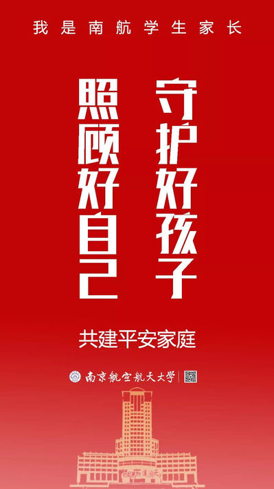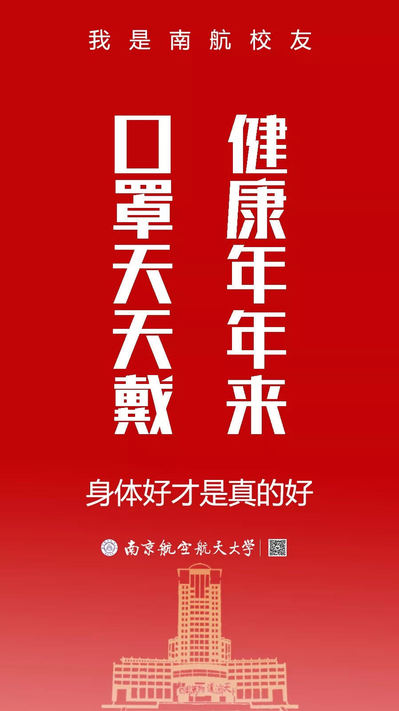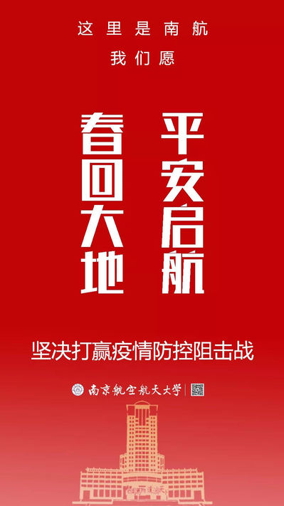 你们所在,就是南航的牵挂所系;你们安好,便是南航的安好!新型肺炎尽管来势凶猛,但可防、可控、可治。我们坚信,在党中央和学校党委的坚强领导下,在全体南航人的共同努力下,只要我们万众一心,众志成城,携起手来,科学防控,就一定可以打赢这场狙击战,最后的胜利一定属于我们!
