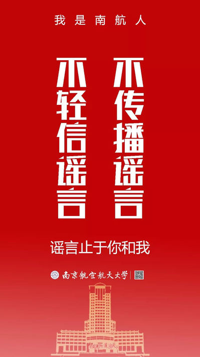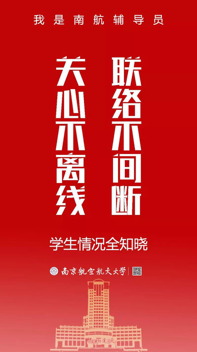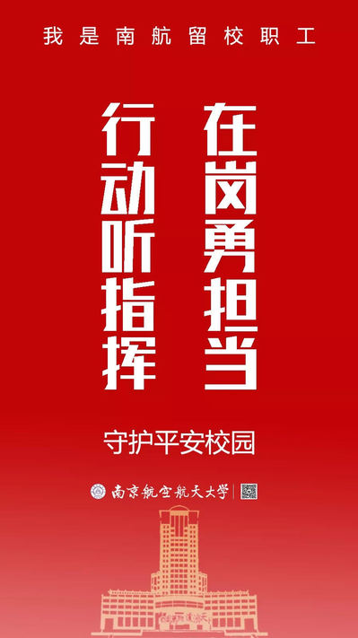 此时此刻,学校十分牵挂天南海北的南航每一位教职员工。也许残酷的疫情,打乱了您的教学任务和科研计划,影响了您的实验进程和工作安排,也许您还处于焦虑、不安甚至无助之中,但请您相信,其实您并不孤单,因为无论您在哪里,在学校党委的坚定领导下,全体南航教职员工始终心心相连、心心相印、心心相惜。只要我们众志成城,从你我做起,从现在做起,我们就一定能打赢这场疫情防控战。在此温馨提醒全体南航教职员工,以实际行动落实学校的相关要求: