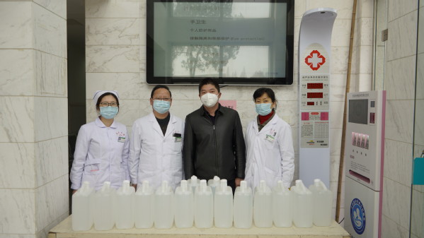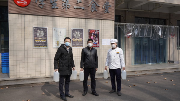 2月5日上午,社会热心人士史存林发扬大爱精神,向校医院、后勤集团捐赠了100升酒精、1000个口罩等疫情防控紧缺物资,以实际行动支持我校疫情防控工作。校医院院长刘协和、后勤集团饮食中心主任陈杰代表所在单位接收了捐赠。
