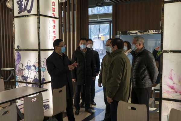 林涛来到学校门岗、校医院、学生宿舍、学生食堂等疫情防控的关键点,查看了明故宫校区疫情防疫的总体情况,并对疫情防控期间坚守岗位的值班值守人员、校园安保人员、后勤管理人员表达了慰问。