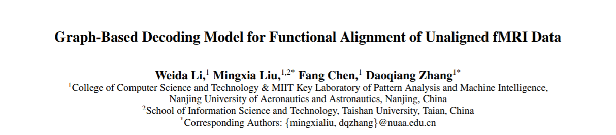 论文《Graph-Based Decoding Model for Functional Alignment of Unaligned fMRI Data》针对脑解码研究中,现有的功能性校准方法是基于时序对齐的fMRI数据集进行建模优化,导致其不能很好地处理现今存在的各种非时序对齐的数据集。非时序对齐的情况包括,一些受试者可能缺乏对某些刺激信号的反应,或者不同的被试者可能接收不同顺序的刺激信号。为了解决这一问题,该工作借助跨被试者图矩阵对不同被试者的fMRI样本之间的差异或相似性进行度量,从而能够描述数据集的非时序特征,并以此为基础提出一种更具柔性的算法框架,以适应当今fMRI数据集的多样性。同时,为了处理fMRI的高维度以及成像技术发展所带来的大样本问题,基于核方法对每个被试者的新特征空间施加一个低维约束,并基于理论分析提出一套简单可行的优化方案,从而降低所需的计算复杂度。