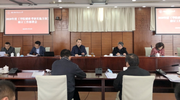 3月23日上午,我校召开《学院绩效考核实施方案》修订工作部署会。校党委副书记陶勇,党委常委、组织部部长李遥,党委常委、宣传部部长王晖,校长助理、党政办主任刘宇雷,学院绩效考核领导小组相关职能部门负责同志参加会议。会议由刘宇雷主持。