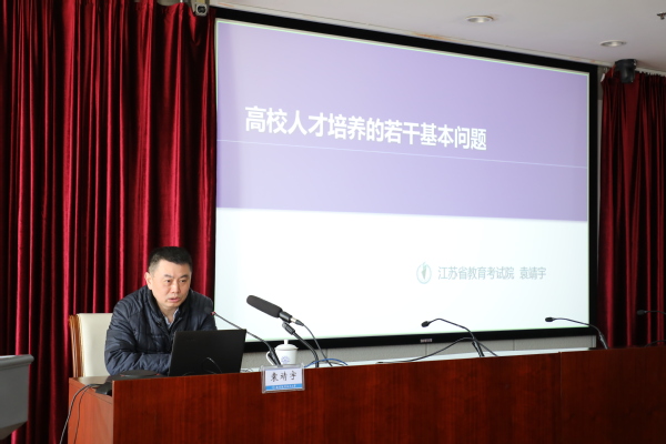 4月2日下午,我校第四场干部教职工学习培训会顺利举行,江苏省教育考试院院长袁靖宇应邀来校作专题报告。校领导、党委常委、校长助理,各学院院长及分管国际合作工作的副院长,国际合作处、国际教育学院负责同志在主会场参加学习会。全校中层干部及各单位机关工作人员,全体辅导员在分会场参加学习会。会议由副校长施大宁主持。