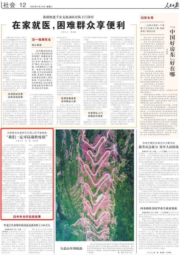 编者按:5月12日,《人民日报》刊发《加纳留学生姚明与中国人民守望相助 》一文,讲述了我校加纳留学生疫情期间受助以及助人的故事,展现了我校积极加强籍留学生疫情防控和服务工作。
