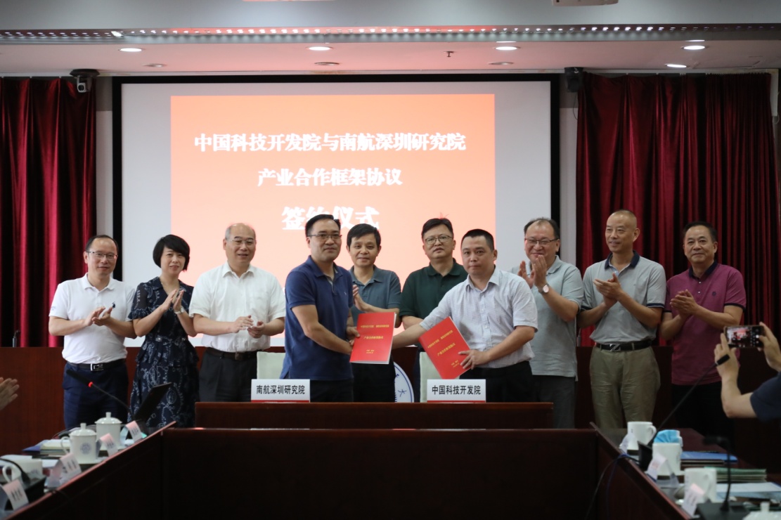 最后,中开院与南航深圳研究院签署了联合推进科技产业的合作协议。根据协议,中开院发挥区域和产业优势,提供相应的物理空间支持南航深圳研究院的落地与科研平台建设,并借助南航的优势学科,双方共同承担航空航天民航等领域里重大项目的科技创新与成果转化。