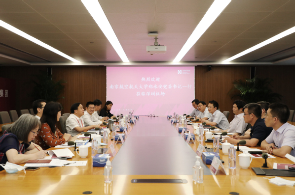 深圳市政府副市长聂新平,宝安区区长郭子平,深圳机场集团党委书记、董事长郑洪波,党委副书记陈敏生,副总经理王穗初对郑永安一行表示欢迎。聂新平充分肯定了我校坚持“三航”特色发展所取得的办学成绩。他指出,南航深圳研究院筹建要在服务国际一流航空枢纽,促进深圳航空产业集群发展,加深与本土企业交融合作中找准定位,为实现自身成长与服务区域经济发展作出贡献。郑洪波希望学校在毕业生输送、干部职工培训、机场教育基地建设等方面给予更多支持。郑永安表示,南航将依托国家重点实验室、研究中心等重大平台,进一步发挥人才、科研、学科专业等集聚优势,加快推进与在深高校、科研机构的合作,为南航深圳研究院落地奠定良好基础。同时,作为与民航系统联系最紧密的高校,南航将继续加强与机场集团的深度合作,在民航运营、机务维修、空港建设、教育基地等方面提供支撑服务,为民航高质量发展建设作出更大贡献。