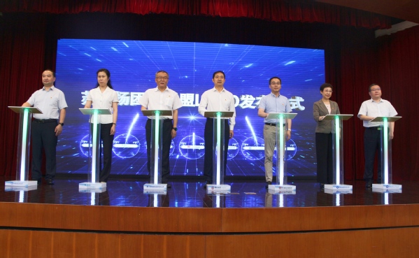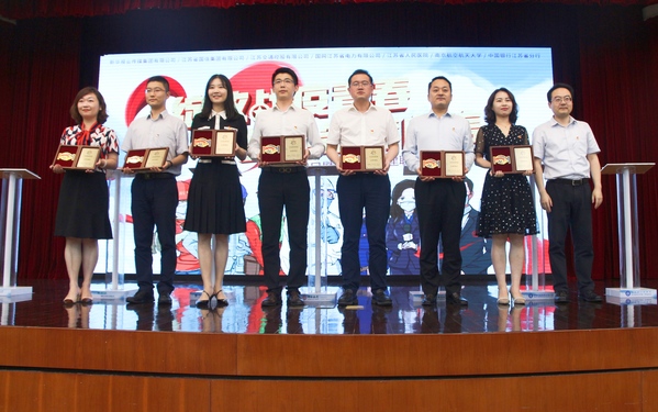 七家成员单位团委负责人签署“苏青扬”团建联盟合作协议,潘文卿为七家成员单位授牌。