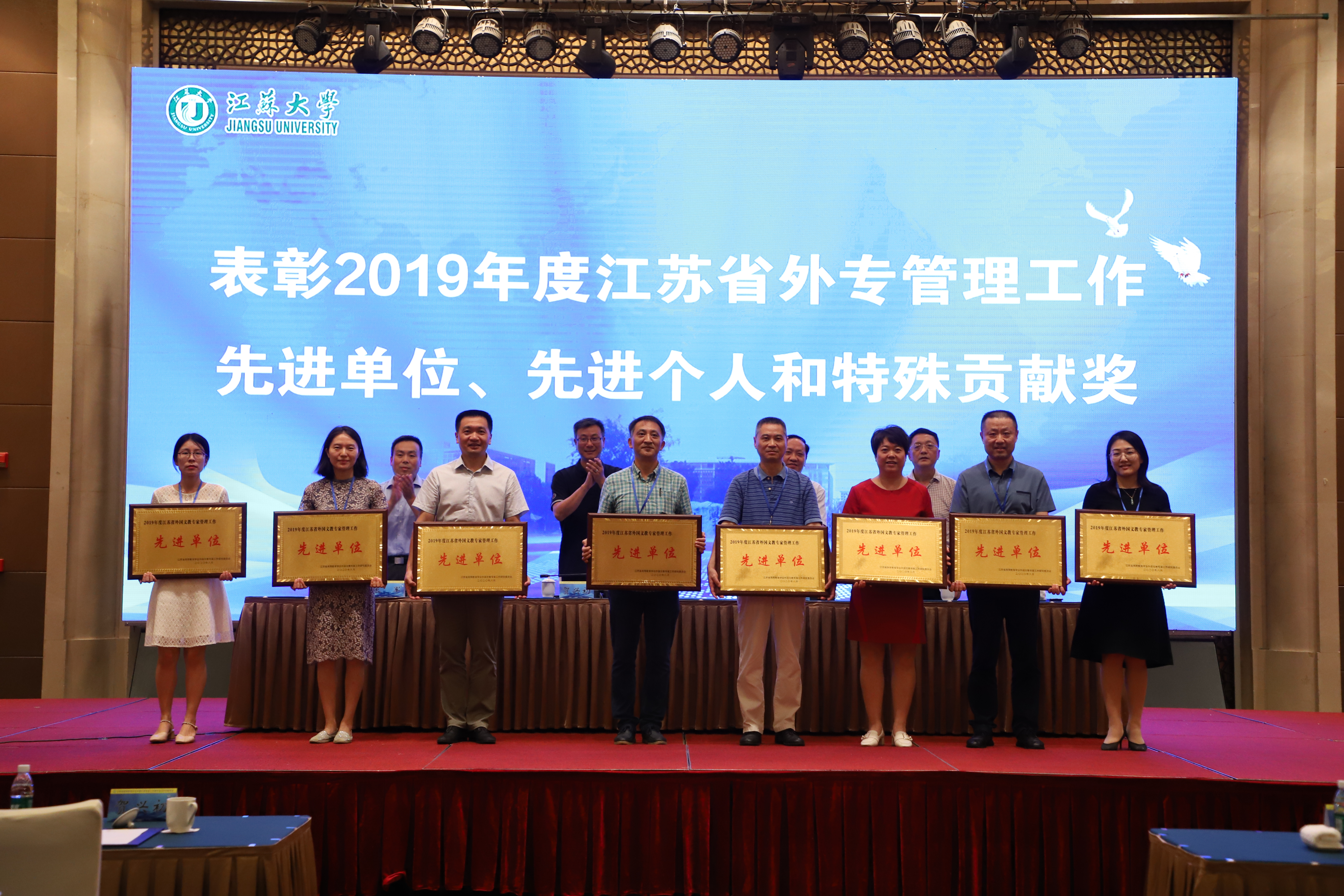 8月10日,江苏省高教学会外国文教专家工作研究会2019年年会在江苏大学召开。江苏省高等教育学会会长丁晓昌、江苏省外国专家局局长杨小平、江苏省教育厅对外合作与交流处处长贺兴初等有关部门领导出席了会议。会议同期召开了研究会常务理事会,经常务理事单位集体评审,我校荣获“2019 年江苏省外国文教专家管理工作先进单位”称号。
