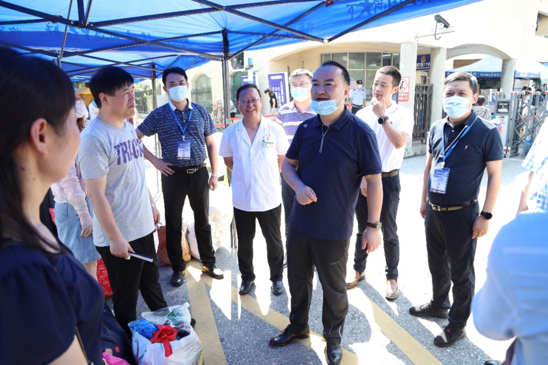 单忠德代表郑永安书记,代表学校党政领导班子看望慰问了值守在学生开学返校一线的各类工作人员、学生志愿者,并向他们的辛勤付出与无私奉献等表示衷心的感谢。他实地察看了学生开学返校入口、校医院、食堂、学生宿舍、教育超市等场所的疫情防控及服务保障工作,详细询问了学生返校与开学准备情况,并与返校学生亲切交流,了解他们的假期生活与返校后的学习生活。他希望各单位要始终紧绷疫情防控之弦,继续慎终如始地抓实抓细疫情防控,坚决做到疫情防控与事业发展两手抓、两手硬,夺取疫情科学防控与教育教学科研双胜利。