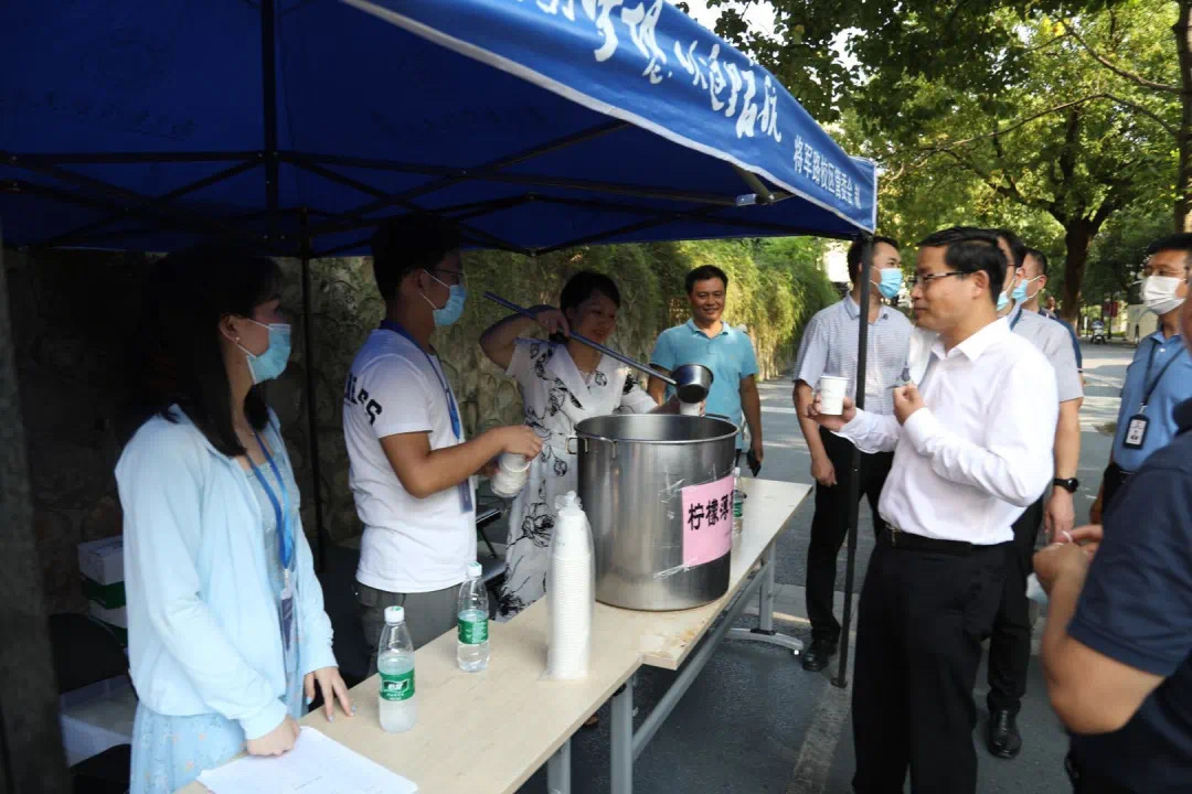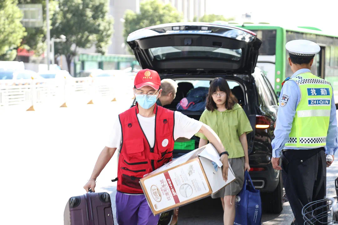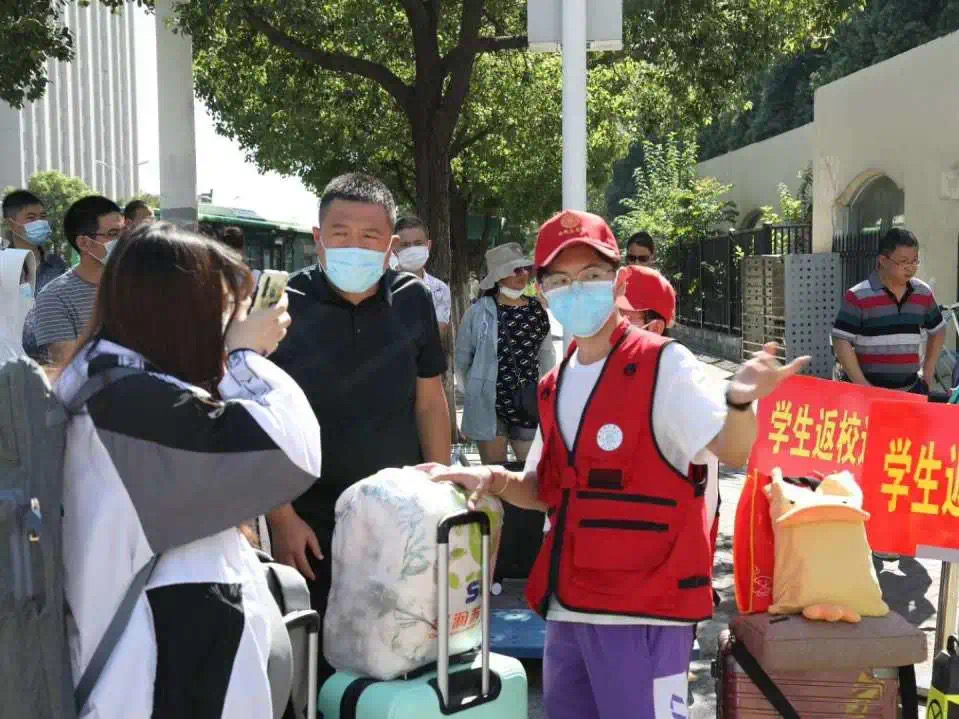 学校上线学生返校、出入校审批等流程,建设人脸识别道闸自动测温系统,为科学防控、精准防控提供信息化手段,助力学生安全返校。学校安排保卫部门老师及校卫队的精干力量,实行校门“包干”,明确工作职责,全体保卫人员不畏酷暑,坚守岗位。此外,学校还邀请到驻区公安民警、交警、城管等多部门警力与安保力量,共同参与学生返校安保工作。学校全体医务人员不畏酷暑,做好防护,准时上岗,坚守在三校区防控第一线。在做好校园师生24小时门、急诊医疗保障需要的同时,认真做好校内发热病人24小时的送诊、隔离、治疗、巡诊等工作。学校对校内设施进行地毯式排查检修,及时更换修缮损坏设施;学生返校首日,两校区13个食堂全面开放,保障返校学生餐饮稳定供给;宿舍管理员为学生晾晒床单、被褥,定期开窗通风、浇灌绿植,提前对楼栋房间地面和公共区域进行深度保洁、杀菌除霉工作;组织志愿服务突击队,协助完成迎新物资搬运、标识张贴、场地布置和学生行李搬运等工作。