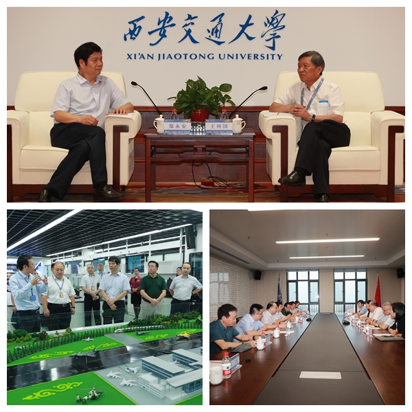 西安交通大学校长王树国,党委副书记宫辉热情接待了郑永安一行。调研期间,宫辉陪同参观了西交大创新港智慧校园运营中心、高端装备研究院、西安交大--米兰理工联合设计学院,双方还就西部科技创新港建设、人才队伍及学科建设等情况进行了充分研讨。王树国指出,南航始终坚持“三航”特色办学,长期服务国防建设,与西交大在诸多方面开展了广泛深入的合作交流。他表示,西部科技创新港的建设是对中国特色世界一流大学的主动探索,希望双方密切合作,携手共进为“双一流”大学建设多作贡献。郑永安对西交大发扬西迁精神,长期扎根西部,为西部开发、国防建设、国家发展所作出的努力和成就表示敬意,对近几年所取得的高质量发展表示祝贺,希望双方在第五轮学科评估、“双一流”大学建设等方面进一步深化合作。