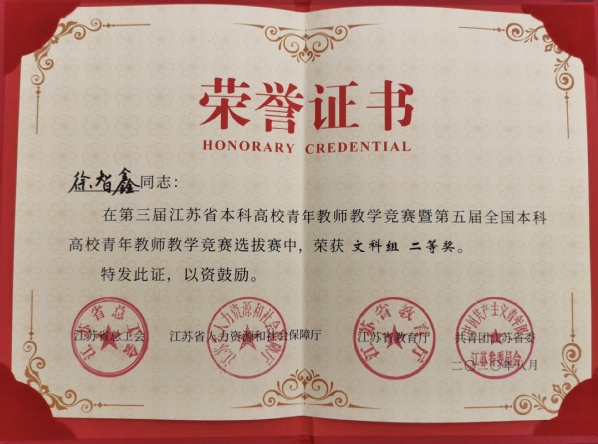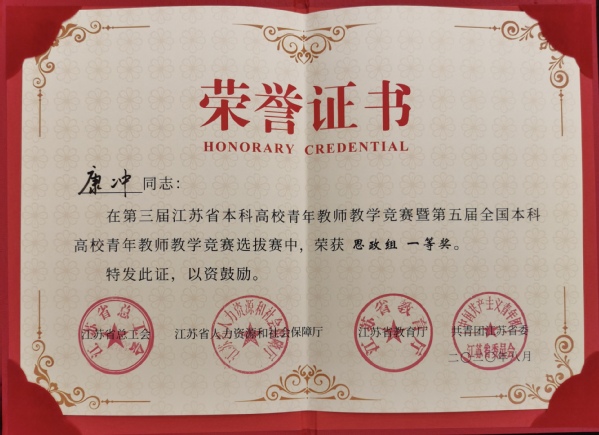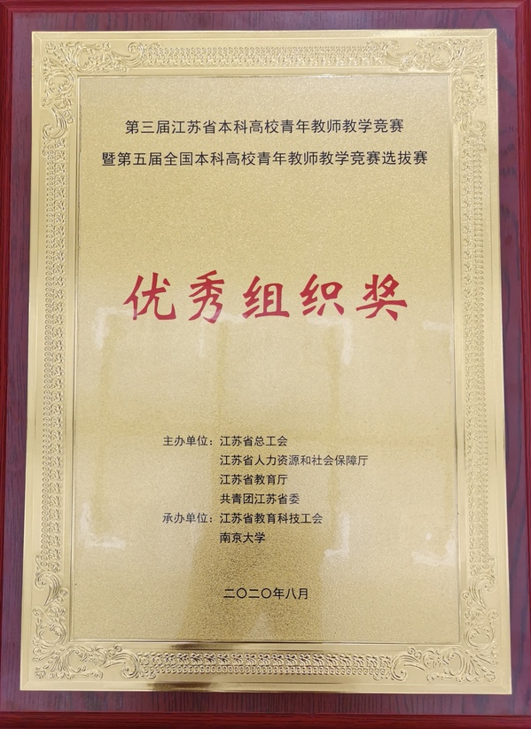 日前,由江苏省总工会、江苏省人力资源和社会保障厅、江苏省教育厅、共青团江苏省委联合举办的第三届全省本科高校青年教师教学竞赛暨第五届全国本科高校青年教师教学竞赛选拔赛落下帷幕。我校经管院辅导员康冲以思政组第二名的成绩荣获一等奖,同时荣获“江苏省五一创新能手”“江苏省技术能手”称号,航空学院张丽和外国语学院徐智鑫两位教师分别荣获工科组和文科组的二等奖,此外,我校还获得优秀组织奖。