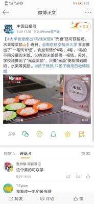 习近平总书记近日对制止餐饮浪费行为作出重要指示,学校迅速响应、主动作为,切实将“厉行节约、反对浪费”落实到实际行动中。学校食堂在原有“光盘打卡”“光盘有奖励”等活动的基础上,推出“一毛钱米饭”,学生花一毛钱就可以买到一份50克的米饭,此举受到学生的广泛好评,同时也得到了央视等主流媒体的关注报道。人民日报、新华社、新华网、央视新闻频道、中国日报、中国青年报、新华日报等中央及省级媒体进行了集中报道,进入微博热搜前3名,阅读量突破1.6亿。