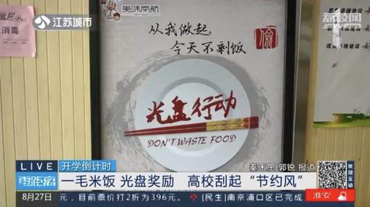 江苏城市频道:开学倒计时 一毛米饭 光盘奖励 高校刮起“节约风”