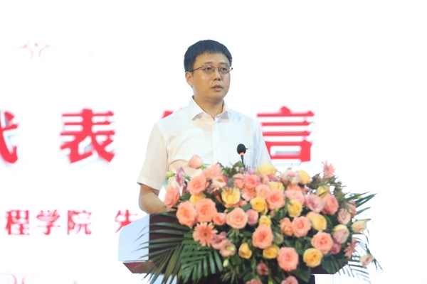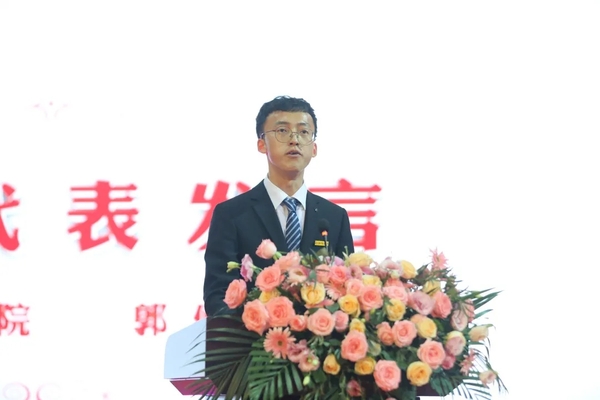 随后,研究生新生代表、机电学院郭何涛同学作为新生代表发言。他表示,作为新时代的研究生,应当主动把个人的理想追求融入到党和国家事业发展需要中,把个人所学专业对接到经济发展新部署和人民群众新期待之中,勇于到基层一线、到艰苦地方、到党和人民最需要的地方去摸爬滚打。
