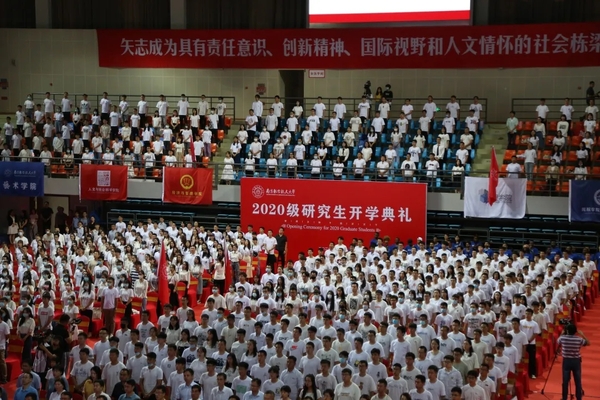 9月4日下午,2020级研究生开学典礼在将军路校区体育馆举行。全体校领导、党委常委、校长助理,校党政办公室、宣传部、研工部/研究生院、团委、将军路校区管委会等部处负责同志、各学院党委书记、院长、党委副书记、副院长、导师代表和全体2020级研究生新生参加了本次典礼,典礼由副校长施大宁教授主持。