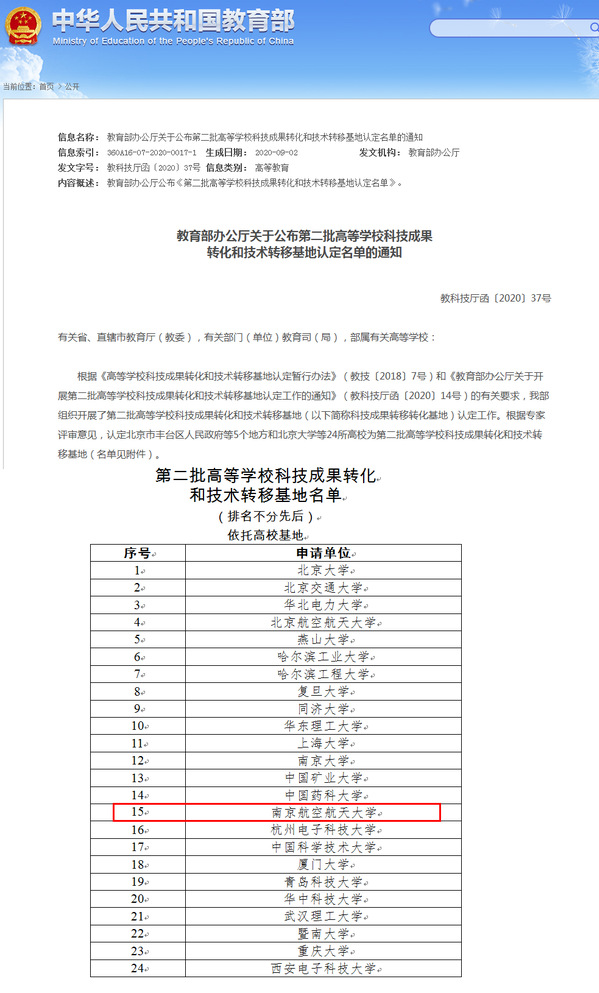 9月8日,教育部科技司公布第二批全国高等学校科技成果转化和技术转移基地认定名单,共有77家高校申报,经过函评、答辩评审等环节,其中24家高校获批高等学校科技成果转化和技术转移基地。经努力,我校成功入选第二批高等学校科技成果转化和技术转移基地。