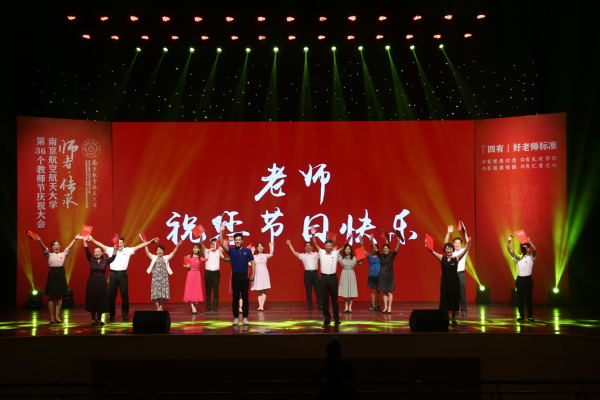 郑永安指出,教师是立校之基、兴校之源,是推动南航建设发展最核心、最强大的竞争力。他对全体教师提出四点希望:一要贯彻落实习近平总书记教师节重要寄语精神,争做“四有好教师”,当好“四个引路人”,坚守“四个相统一”;二要涵养师德师风,不断提高育人水平,努力成为学生敬仰爱戴的学问之师、品行之师;三要对学生胸怀大爱,心存仁爱,让每个学生都感受到南航的温暖,让所有学生都健康成长;四要树立终身学习理念,站在知识发展最前沿,刻苦钻研、严谨笃学,引导学生走向未来。