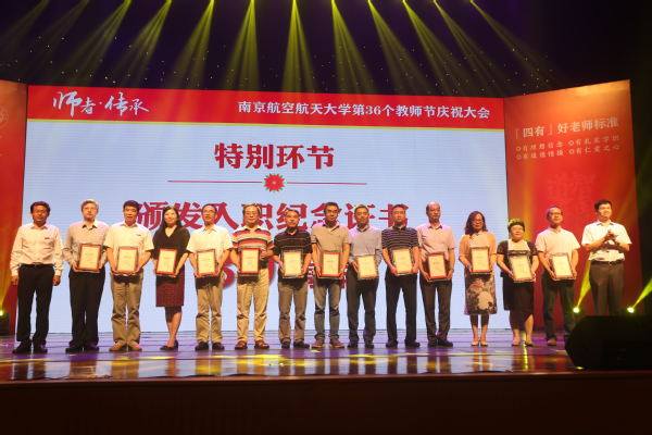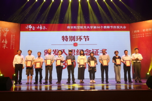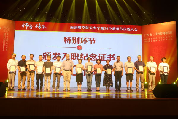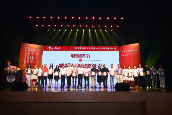 大会为入职南航10年、20年、30年的教师代表颁发纪念证书,并通过专题视频回顾了南航教师一年来在教学、科研、国际合作等方面取得的重要成绩。